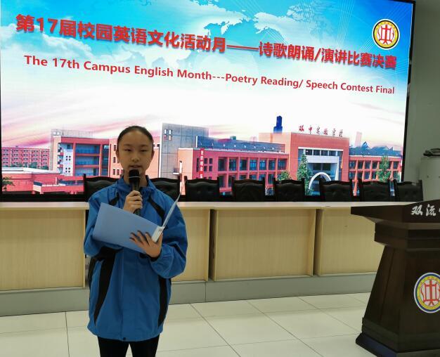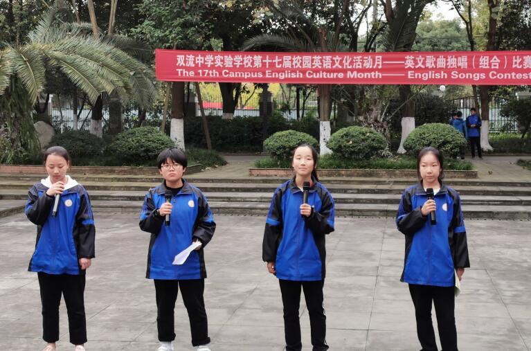 Since 2003, the Campus English Culture Month has been a feast for all the students and teachers in the Experimental School of Shuangliu Middle School. This event aims at promoting the interest and atmosphere of English learning among students, which also provides them an opportunity to deepen the understanding of western culture and shows the blooming and energetic spirit of students, as well as encouraging them to study English harder. There are plenty of activities for students to show talents, such as the singing competition, the short play competition, the speech contest, the animation dubbing, etc.It's the 17th Campus English Culture Month this year.
