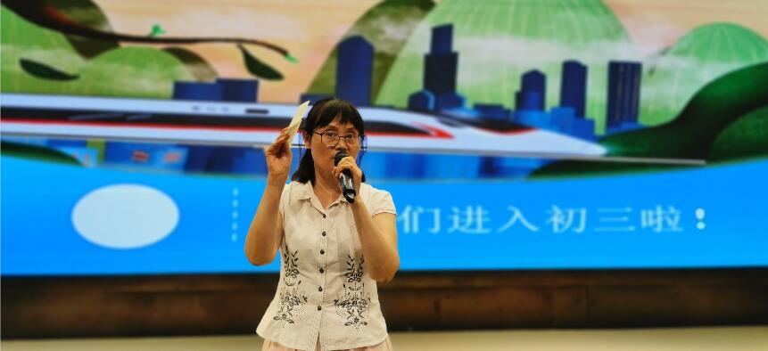德育處王主任致辭,她希望初三學(xué)子們能一如既往地將規(guī)則內(nèi)化于心,踐行于行。