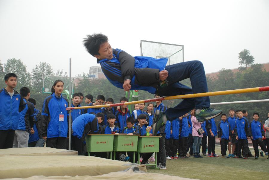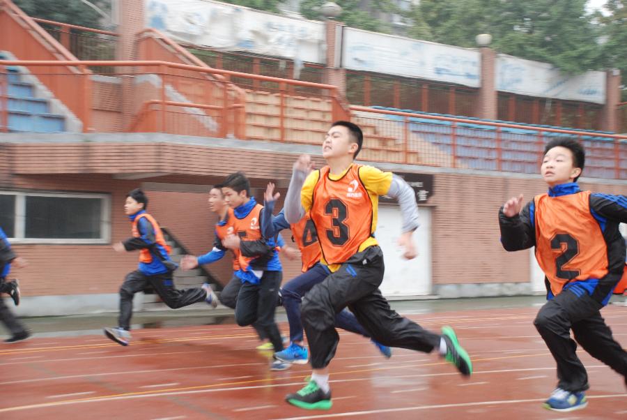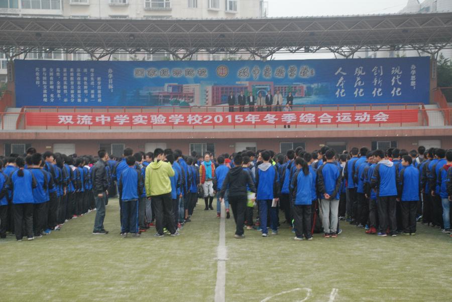 11月6日,我校2015年度冬季運(yùn)動(dòng)會(huì)在學(xué)校體育場(chǎng)隆重舉行。本次運(yùn)動(dòng)會(huì)比賽共設(shè)6個(gè)單人項(xiàng)目,3個(gè)集體項(xiàng)目。包括男女100米、400米、男子1000米、女子800米跑、跳高、跳遠(yuǎn)、實(shí)心球,廣播體操?zèng)Q賽、 8字跳繩,50米迎面接力跑等項(xiàng)目,七、八年級(jí)二千多名學(xué)生參加了此次運(yùn)動(dòng)會(huì)。